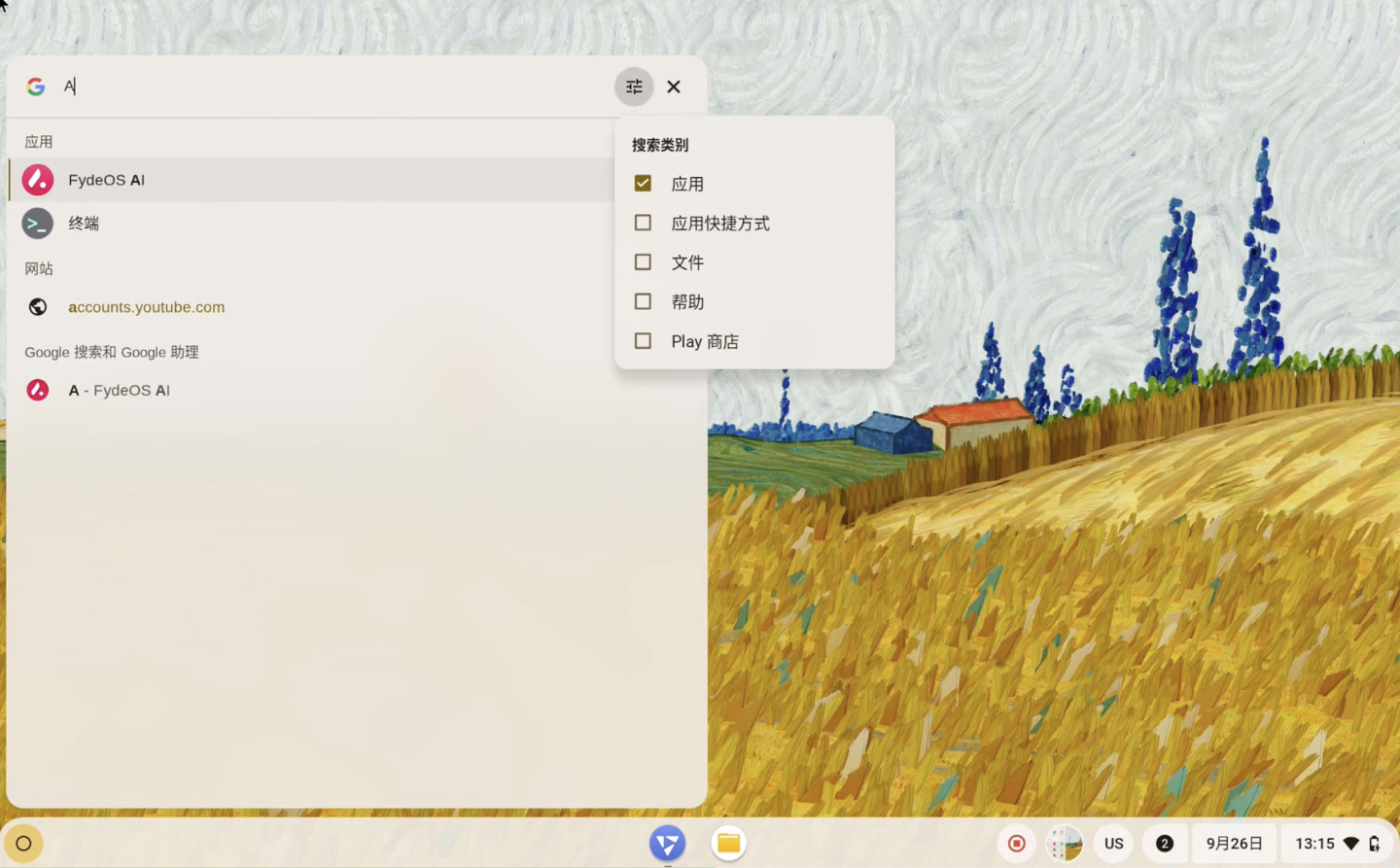 新功能与提升增强的启动器搜索与筛选功能现在,用户可以更快速、更直观地找到所需内容。启动器搜索功能已升级,支持筛选器。支持按照「应用」、「文件」、「设置」等类别缩小搜索范围,获得更精确、高效的搜索体验。